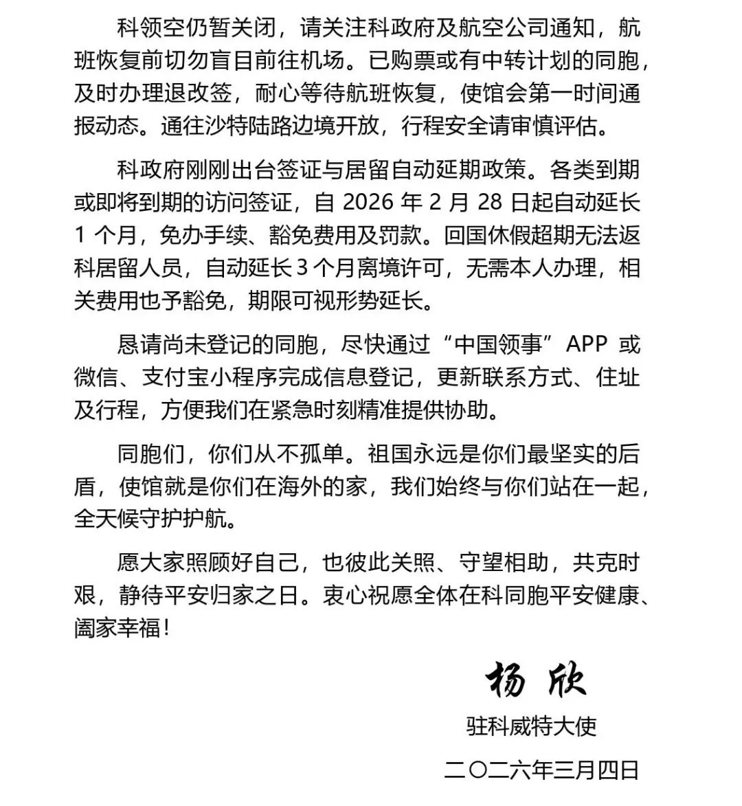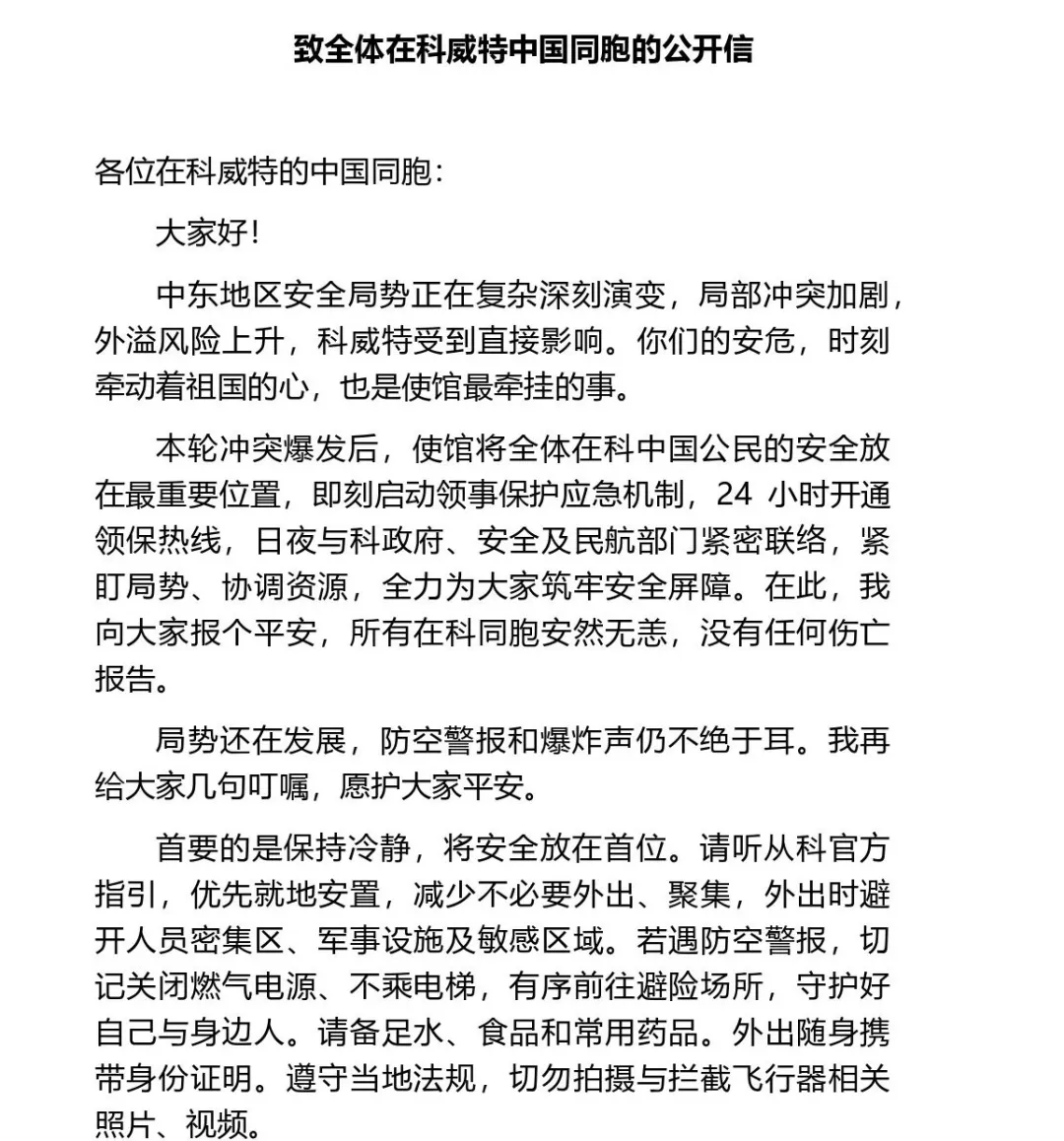 致全体在科威特中国同胞的公开信