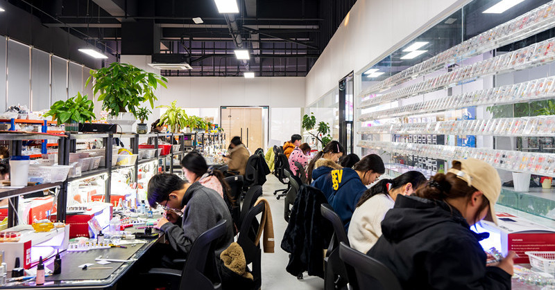 相较于耗时数小时的传统美甲,可随时粘贴更换、款式多样的手工穿戴甲迅速风靡。东海抓住消费升级机遇,自2019年起,依托深厚的手工艺积淀,从生产廉价机器甲转向高附加值的手工甲。短短数年,形成庞大产业集群。