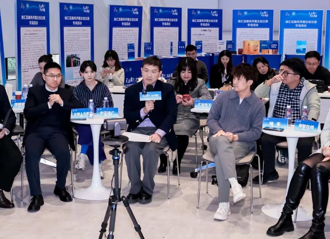 “我对徐汇有很深的感情。十年前我在这里工作过,如今公司落户徐汇,感觉变化巨大——政策支持更实、配套更全,政府对中小企业的服务真的很到位。”上海缇禾网络信息科技公司董事长刘海亮的发言引来阵阵共鸣。随后,他就资质申报、活动参与、出海获客等需求,与区发改委、海智在线进行对接。