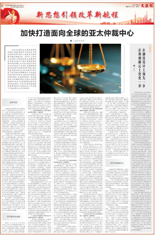 仲裁是我国法律规定的纠纷解决制度,也是国际通行的纠纷解决方式。当前,世界经济格局深刻变化,在全球发展挑战与机遇并存的形势下,建设国际商事仲裁中心成为全球多个国家和地区维护国际经贸秩序、促进国际经济交流合作、提升国际话语权的重要举措。上海作为世界观察中国的重要窗口,肩负着代表国家参与国际合作与竞争的职责使命。推进国际商事仲裁中心建设,努力将上海打造成为面向全球的亚太仲裁中心,对上海深化高水平对外开放、打造国际一流营商环境具有十分重要的意义。