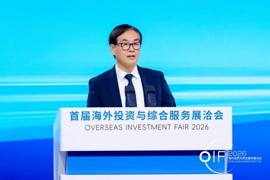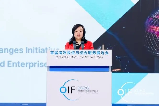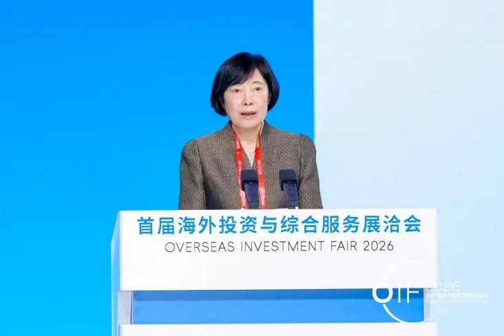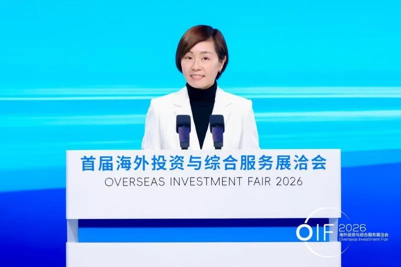 中国国际投资促进会常务副会长周晓燕宣读《海外综合服务全球合作伙伴倡议》,呼吁海内外各界携手共建开放包容、互利共赢的海外投资合作生态。